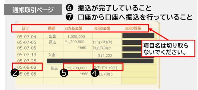 残高、および本件に関係ない取引部分は、黒塗りしていただいて結構です。