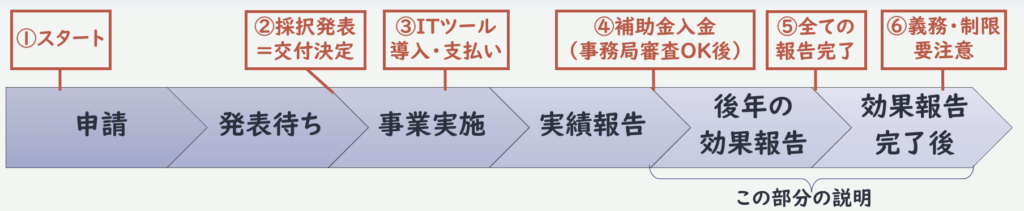 補助金の入金後も、IT導入補助金関連の義務や事務作業は完了したわけではなく後年まで続きます。