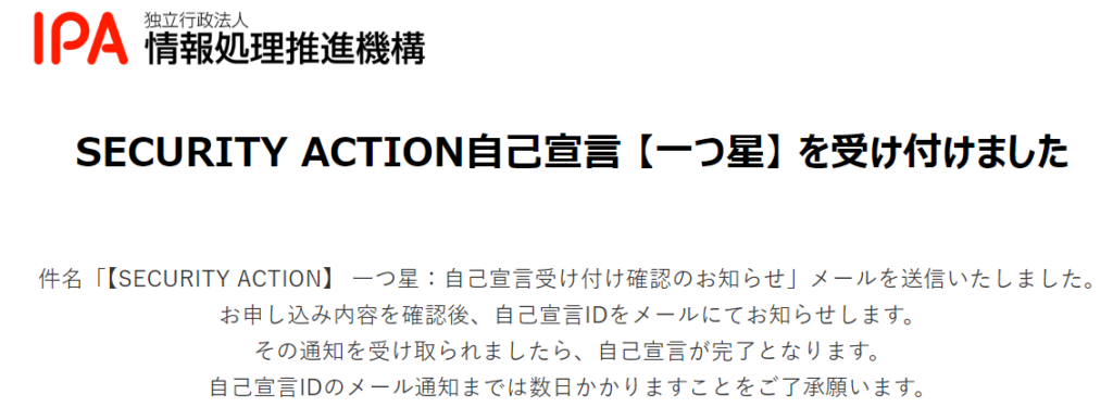 件名(例):【SECURITY ACTION】自己宣言IDのお知らせ