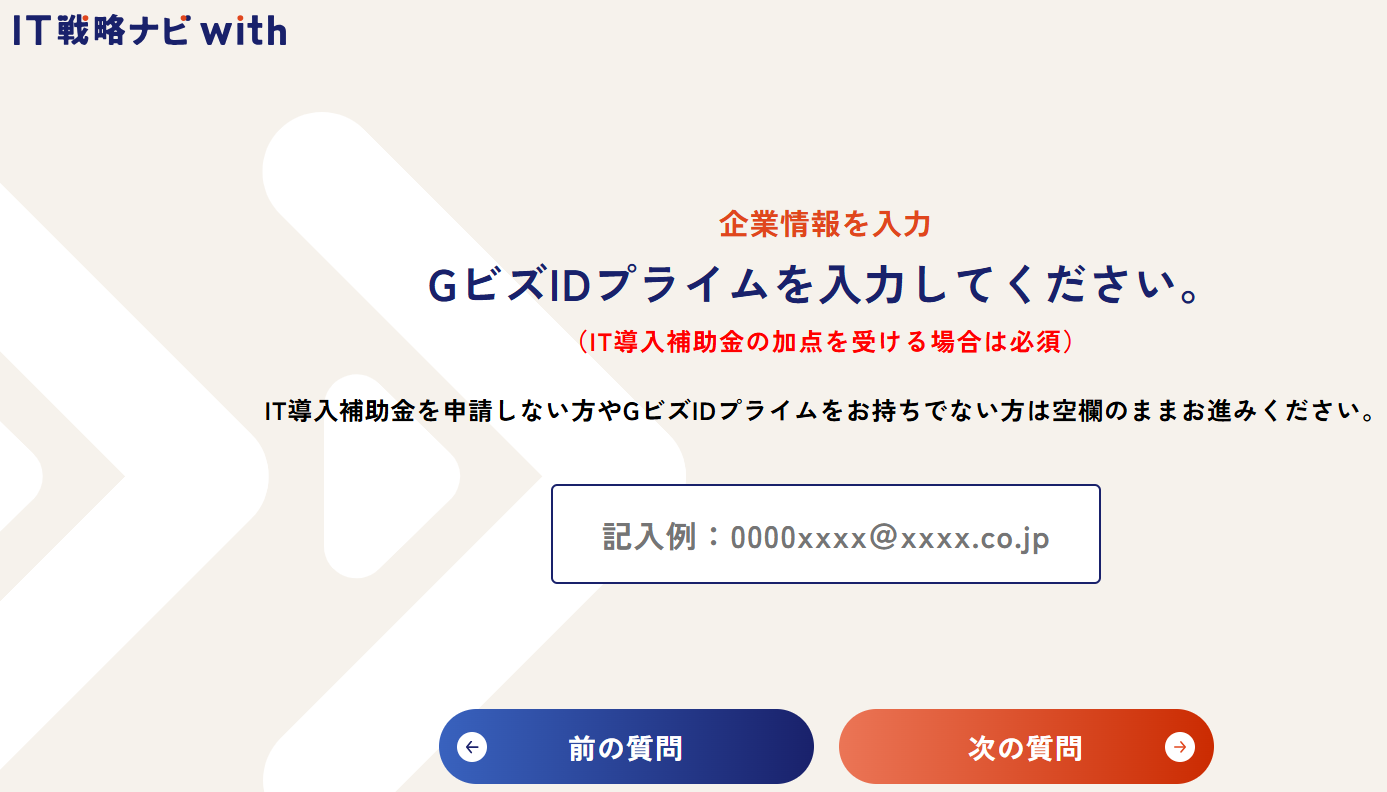 「GビズIDプライムを入力してください。」という画面では